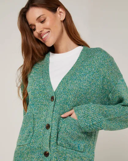 Gros gilet manches courtes en Mohair mélangé Virtuel vert foncé/marine