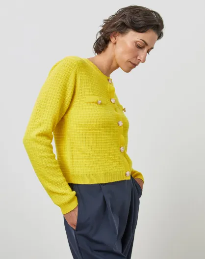 Cardigan Raven 100% Cachemire boutons et poches jaune