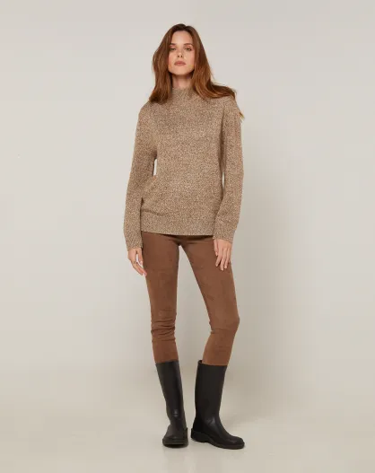 Pull chiné Leonarde col montant marron