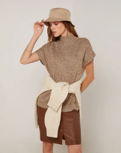 Pull Phoebe col roulé sans manches marron