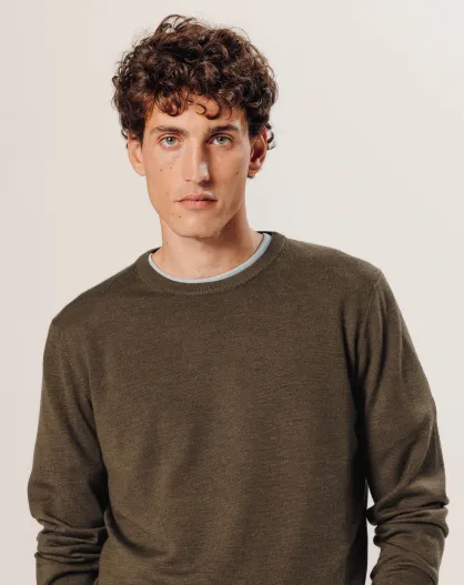 Pull Aaron 100% laine col rond marron écorce