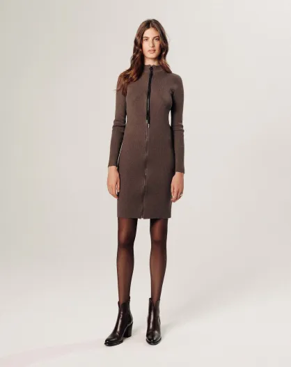 Robe Thalia fermeture éclair marron havane