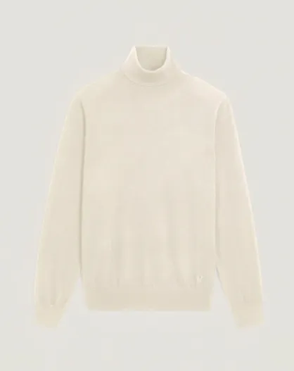 Pull 100% Cachemire col Roulé Uni Nachrol écru