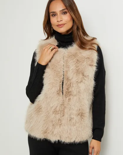 Gilet en fausse fourure sans manches Camille beige