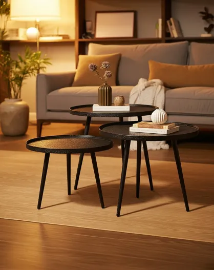 Soccoro - Table basse ronde gigogne en métal noir