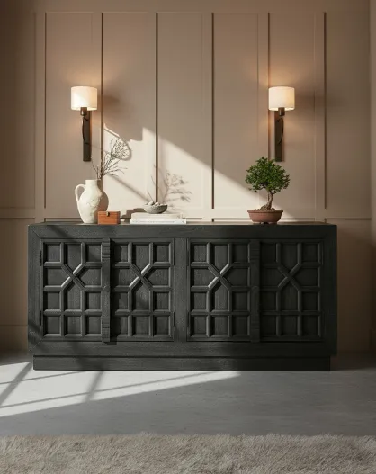 Zaraya - Buffet bas sculpté en bois massif de manguier 185 cm