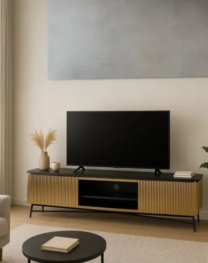 Glory - Meuble tv finition laiton vieilli avec plateau en marbre noir 170 cm