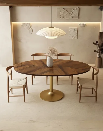 Leaf - Table repas ovale en manguier et métal doré L160 cm 8 pers.