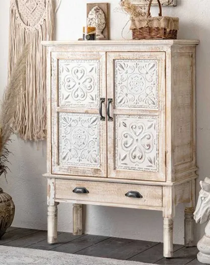 Mala - Buffet haut 2 portes en bois de manguier massif sculpté 85 cm