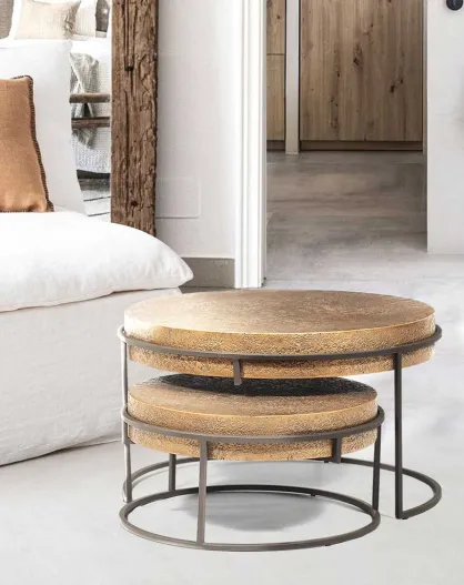 Table basse ronde en béton pieds en teck Dak beige - 92x92x41 cm