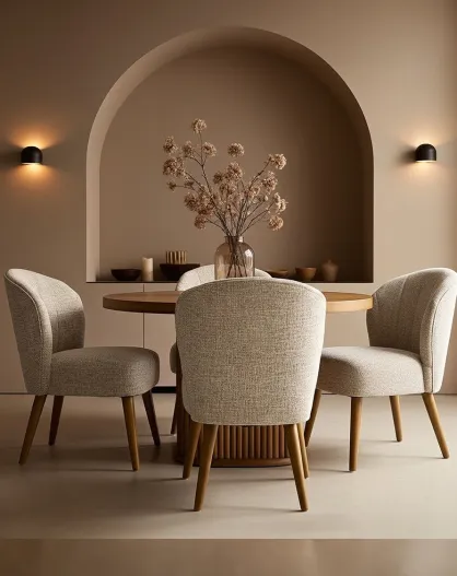 2 Chaises de repas Perla en tissu beige incurvé 60x70x85cm