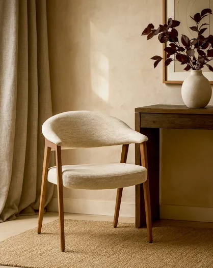 Soria - Chaise salle à manger en tissu beige piétement finition bois blanchi