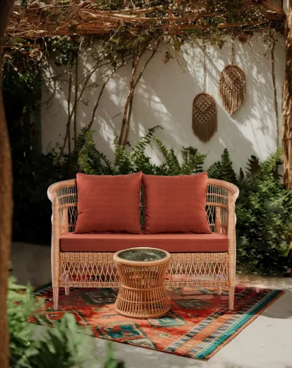 Lusso - Canapé de jardin 2 places en rotin, coussin amovible