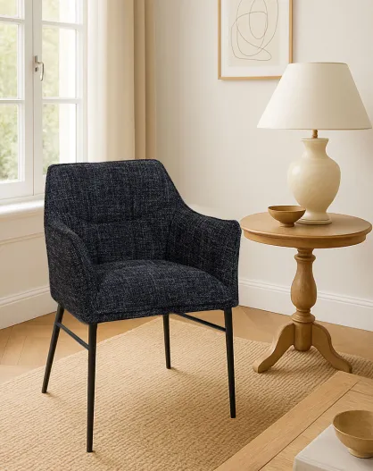 Lot de 4 Chaises chacha en tissu Noir et pieds métal