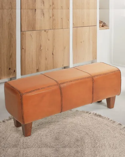 Tula - Banc rembourré en teck massif et cuir marron