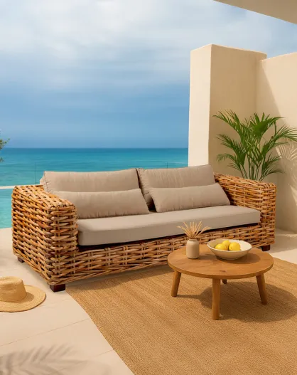 Weaverly - Canapé de jardin 3 places en rotin tressé
