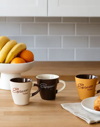 6 Tasses Expresso Italiano 15Cl En Grès 3 Couleurs Assorties