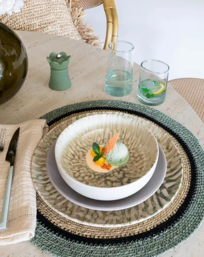 6 Coupelles Jade 600Ml En Grès Beige Et Vert