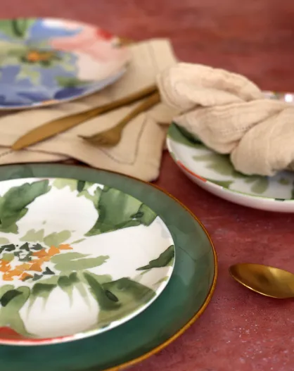 6 Assiettes Desserts Floralux 21Cm En Porcelaine