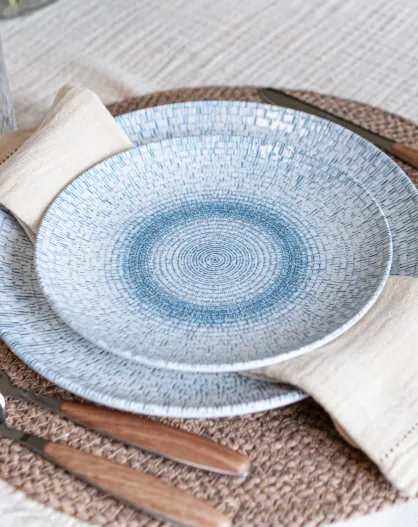 6 Assiettes Plates Aqua 27Cm En Porcelaine Blanc Et Bleu