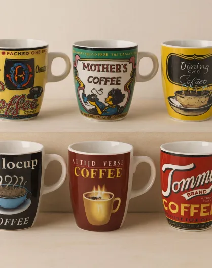 6 Tasses À Café Old School 20Cl Porcelaine Decors Assortis
