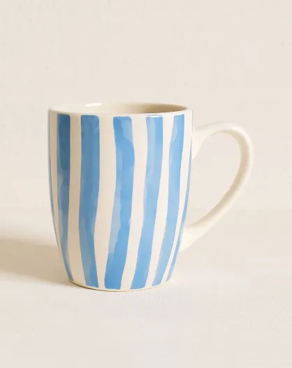 6 Mugs Corfu 38Cl En Grès Blanc Avec Des Rayures Bleues