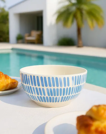 6 Bols Corfu 58Cl En Grès Blanc Avec Des Rayures Bleues