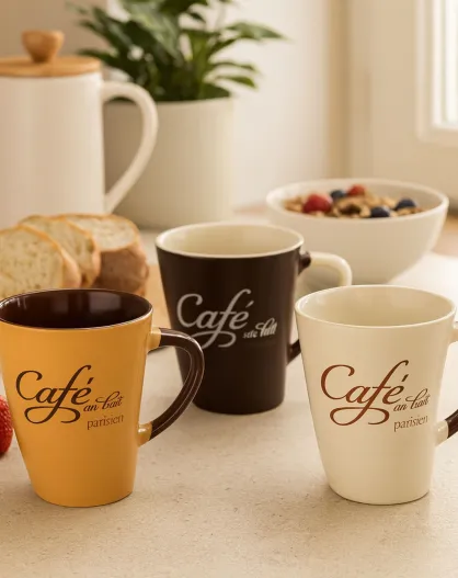 6 Mugs Café Parisien 30Cl En Grès 3 Décors Assortis