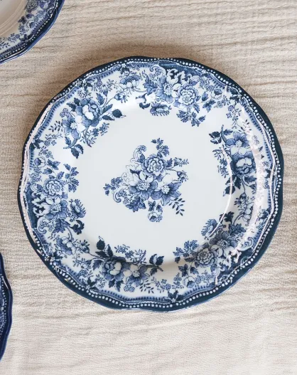 6 Assiettes Creuses En Porcelaine Bleu Faustine 22Cm