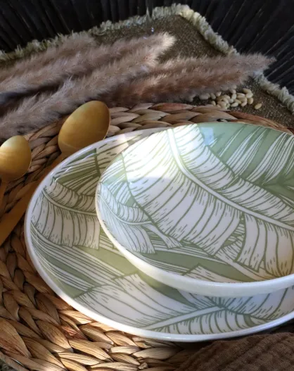 6 Assiettes Creuses Leaves 20.5Cm En Grès Vert