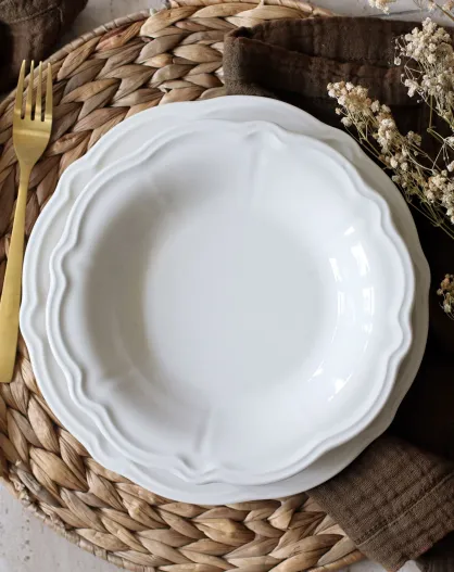6 Assiettes Creuses Charlotte 22Cm En Grès Blanc
