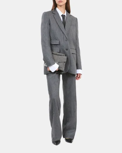 Veste tailleur en laine & cachemire à rayures gris clair