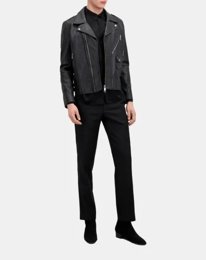 Blouson biker avec studs en cuir noir