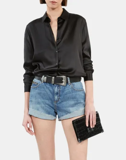 Chemise à manches courtes en Coton & Soie à pois noir/blanc