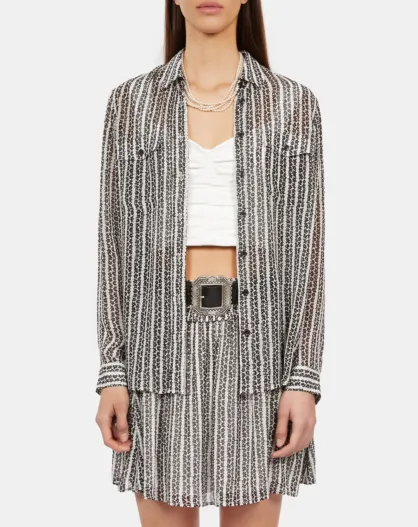 Chemise à manches courtes en Coton & Soie à pois noir/blanc