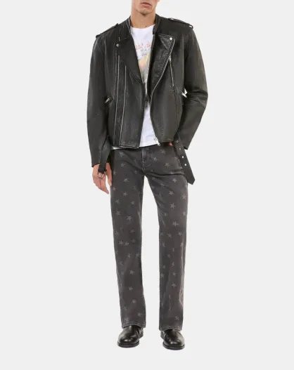 Blouson biker en cuir noir