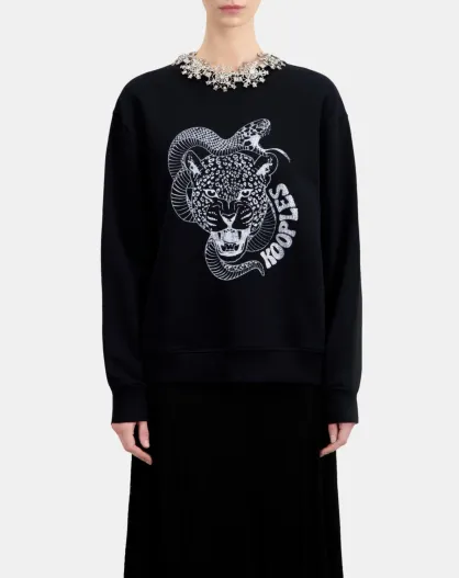 Robe Femme type sweatshirt noire lavé avec sérigraphie Barking dog