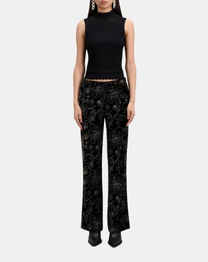 Pantalon tailleur flare à carreaux vichy noir et blanc