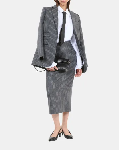 Jupe crayon mi-longue à rayures gris clair