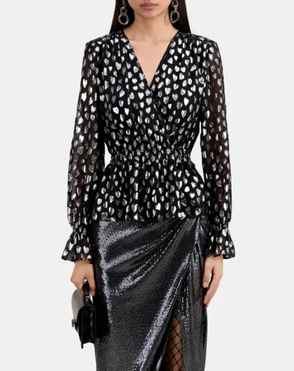 Top avec cœurs argentés noirs