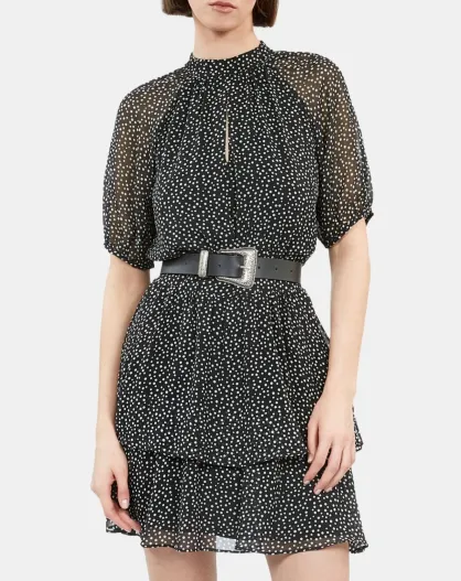 Robe courte noire à pois blancs