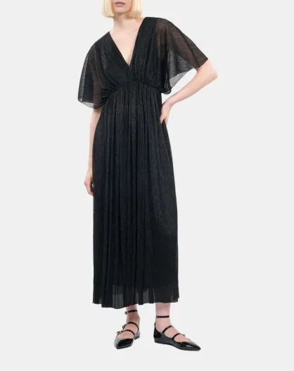 Robe longue en jersey métallisé noire
