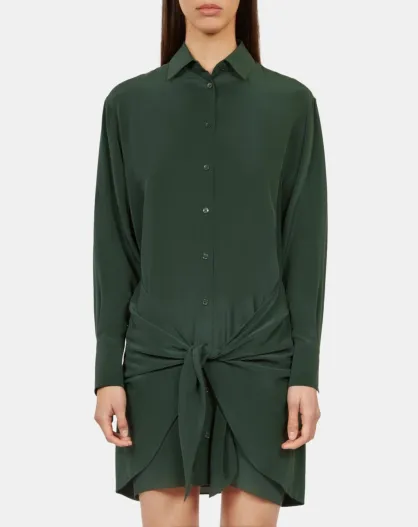 Robe chemise courte en soie avec nœud kaki