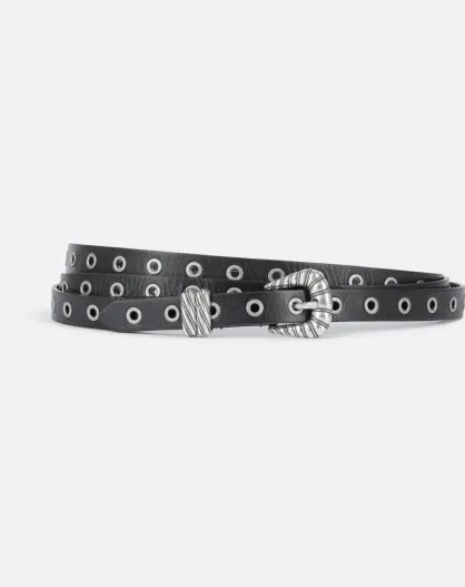 Ceinture fine double tour en cuir noire