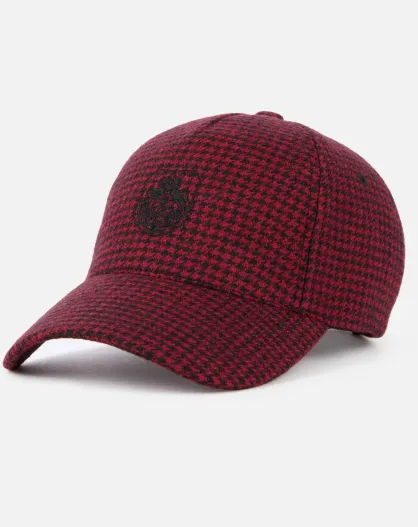 Casquette en laine pied de poule noir et rouge