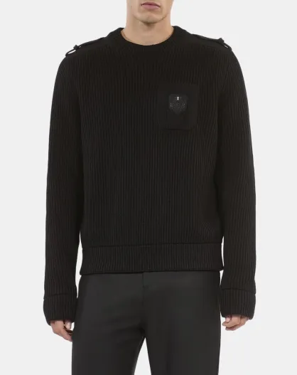 Pull à losanges en laine et alpaga noir et gris et blanc