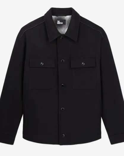 Blouson type surchemise en laine mélangée bleu marine foncé