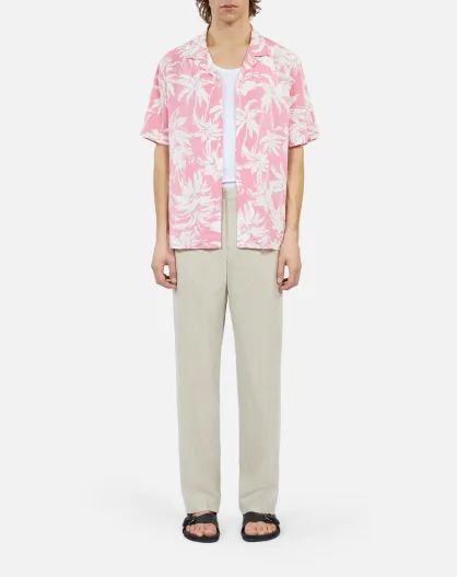 Chemise à manches courtes imprimée palmiers rose et blanc