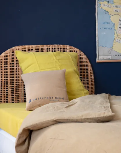 Parure de lit en lin lavé 1 place jaune 140x200 cm