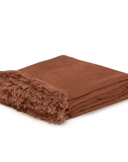 Couvre-lit en lin finitions frangées rouge 250x250cm